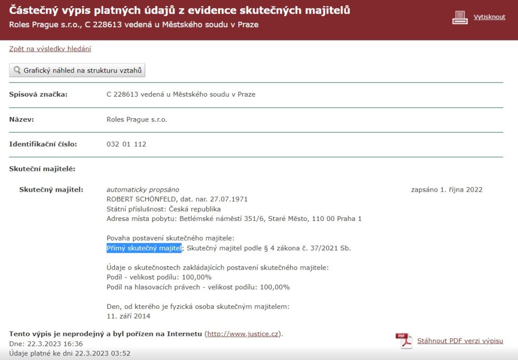 • Podnikání Roberta Schönfelda je mimořádně netransparentní